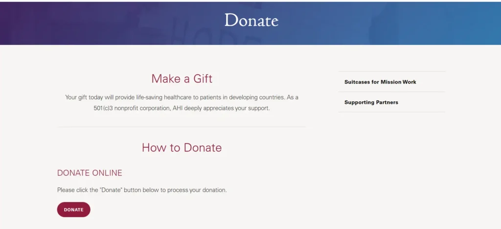 On the AHI page, scroll to the section titled “How to Donate” and click the “DONATE” button.